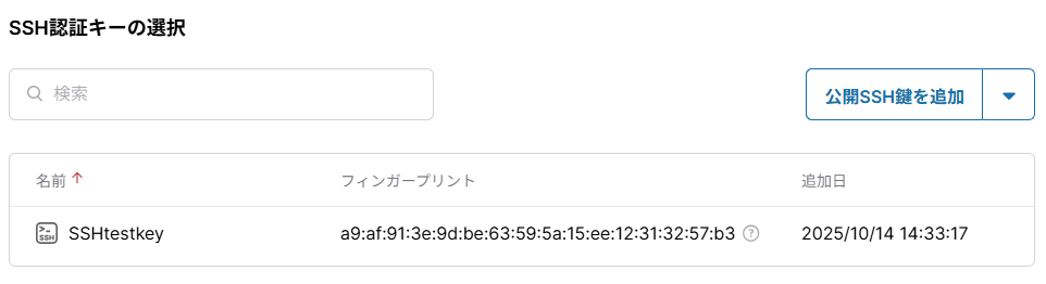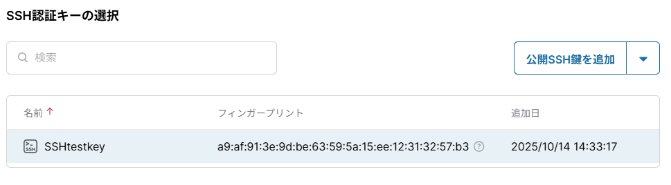 SSH認証キーの名前はお客様が自身で命名された名前となります。