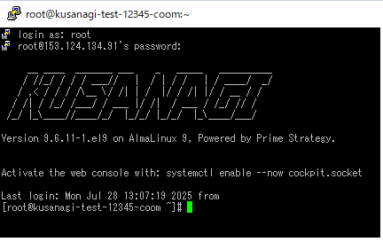 WindowsでKUSANAGI 9にsshでログイン - KUSANAGI