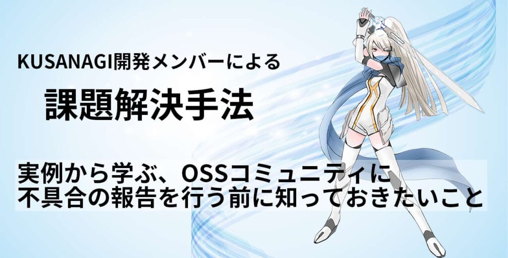 オープンソースのコミュニティに不具合を報告する上で重要なことは、KUSANAGI の不具合を報告する場合と基本的には変わりません。