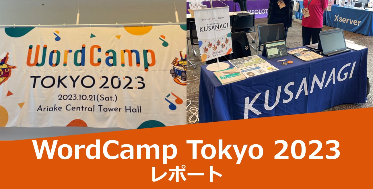 プライム・ストラテジー「KUSANAGI」開発チームの石川です。 2023年10月21日に有明セントラルタワーホールで4年ぶりの開催となった「WordCamp Tokyo 2023」にスポンサーとして参加してきました。 … Read more